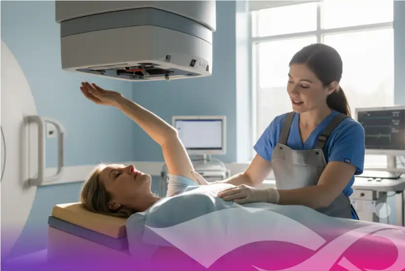 In breast cancer treatment, radiation gives confidence that the cancer has been fully controlled. It reduces the risk of recurrence and, in many cases, allows breast-conserving surgery instead of complete removal.